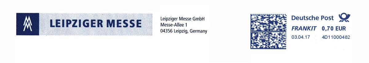 Textinhalt im Werbeklischee: M / M / LEIPZIGER MESSE / Leipziger Messe GmbH / Messe-Allee 1 / 04326 Leipzig, Germany