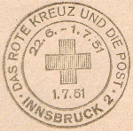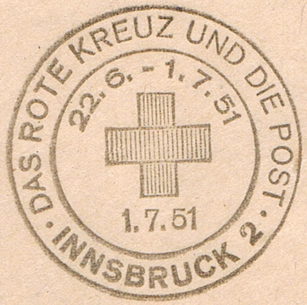 Textinhalt bei Gelegenheitsstempel: DAS ROTE KREUZ UND DIE POST / 22.6. - 1. 7. 51