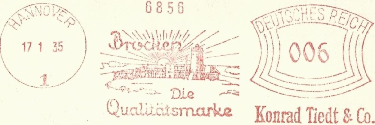 Textinhalt im Werbeklischee: Brocken / Die Qualitätsmarke / Konrad Tiedt & Co.