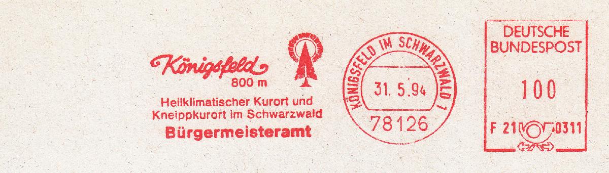 Stempeltext im Stempelkopf: KÖNIGSFELD IM SCHWARZWALD 1 / 78126