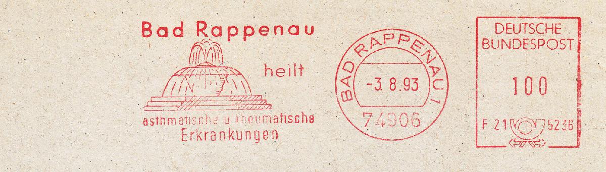 Stempeltext im Stempelkopf: BAD RAPPENAU 1 / 74906