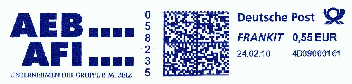 Textinhalt im Werbeklischee: AEB ■■■■ / AFI ■■■■ / UNTERNEHMEN DER GRUPPE P. M. BELZ