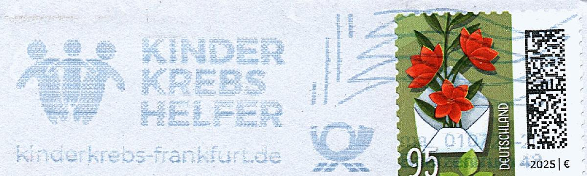 Textinhalt bei Gelegenheitsstempel: KINDER / KREBS / HELFER / kinderkrebs-frankfurt.de