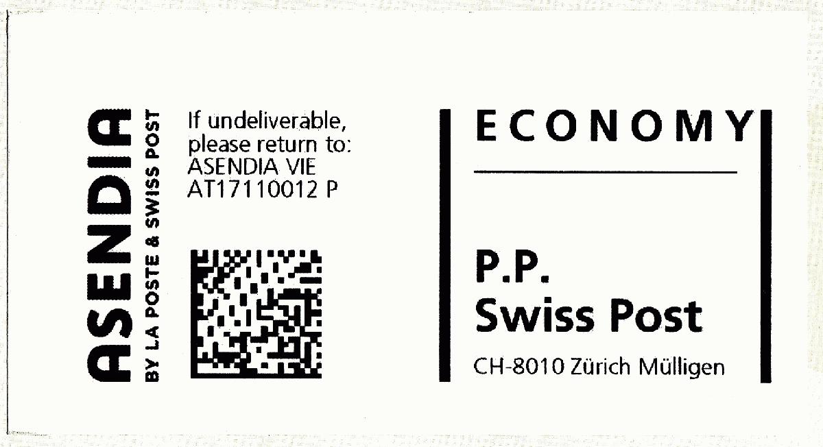 Postes Suisses / Taxe Percue/Taxe bezahlt / Postage paid / 8010 Zürich