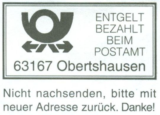 ENTGELT / BEZAHLT / BEIM / POSTAMT / 63167 Obertshausen