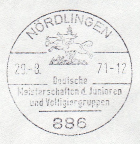Textinhalt bei Gelegenheitsstempel: Deutsche / Meisterschaften d. Junioren / und Voltigiergruppen