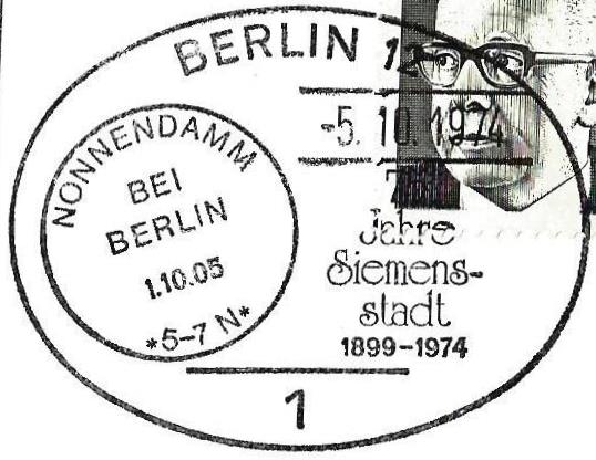 Bildbeschreibung bei Motivstempel: Kreisstempel "NONNENDAMM / BEI / BERLIN / 1.10.05 / *5-7 N*"