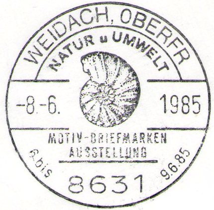 Textinhalt bei Gelegenheitsstempel: NATUR u UMWELT / MOTIV - BRIEFMARKEN / AUSSTELLUNG / 6 bis / 9.6.85