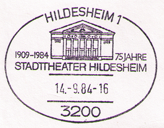 Textinhalt bei Gelegenheitsstempel: 1909-1984 / 75 JAHRE / STADTTHEATER HILDESHEIM