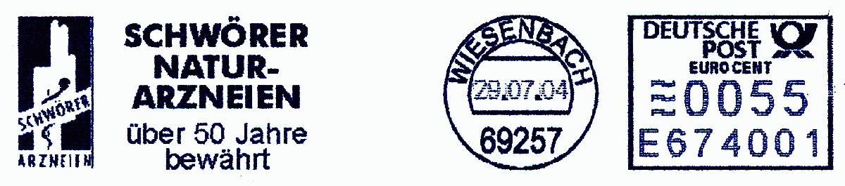 Stempeltext im Stempelkopf: WIESENBACH / 69257