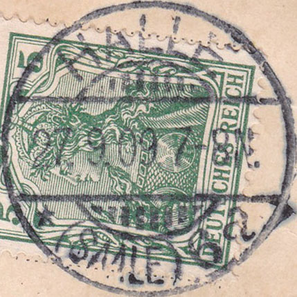 Stempelform: Kreisstegstempel mit Gitterbogen oben und unten