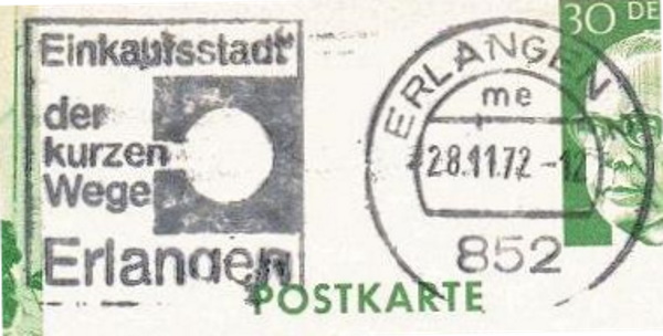 Stempeltext im Stempelkopf: ERLANGEN 2 / me / 852