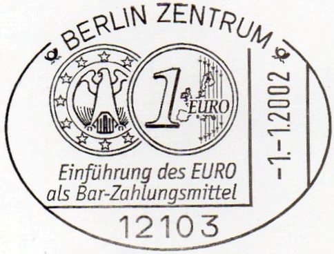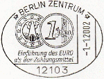 Textinhalt bei Gelegenheitsstempel: Einführung des EURO / als Bar-Zahlungsmittel