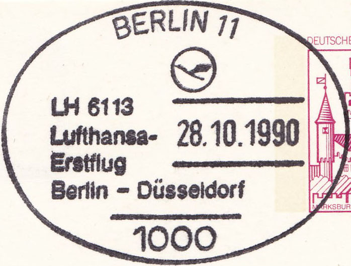 Textinhalt bei Gelegenheitsstempel: LH 6113 / Lufthansa- / Erstflug / Berlin - Düsseldorf