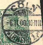 Stempelform: Kreisstegstempel mit Gitterbogen oben und unten