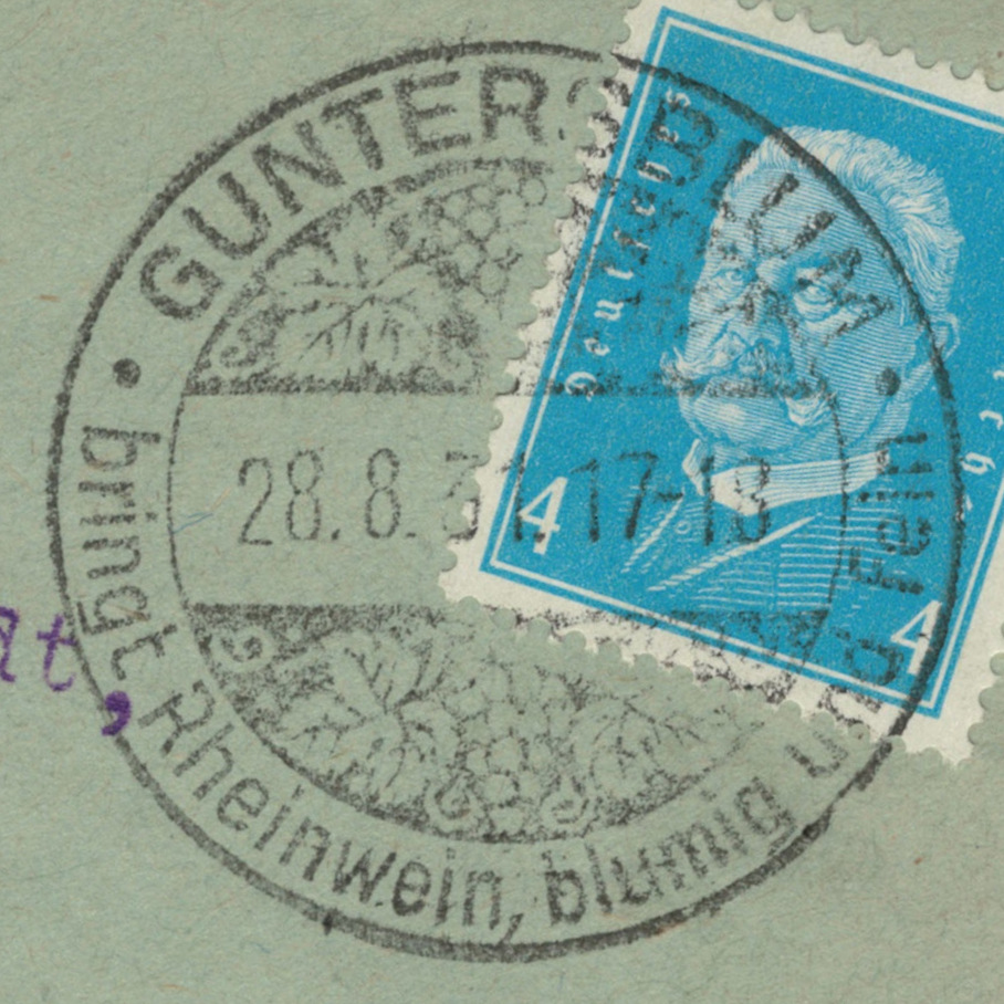 Textinhalt bei Gelegenheitsstempel: bringt Rheinwein, blumig und fein