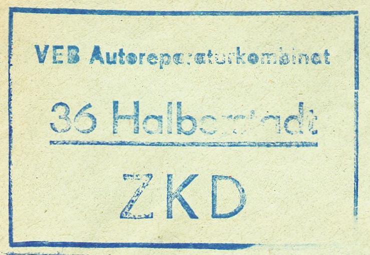 Stempeltext: VEB Autoreparaturkombinat / 36 Halberstadt / ZKD