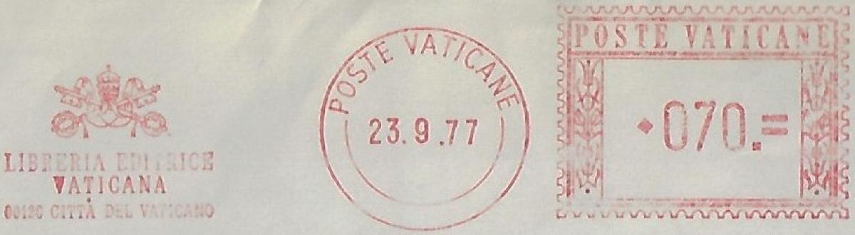 Textinhalt im Werbeklischee: LIBRERIA EDITRICE / VATICANA / 00120 CITTÀ DEL VATICANO