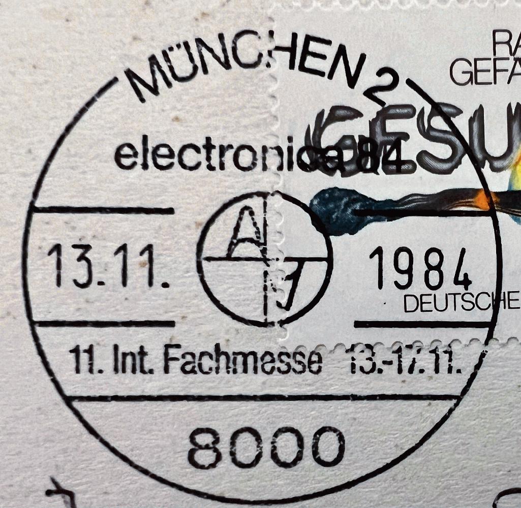 Textinhalt bei Gelegenheitsstempel: electronica 84 / 11. Int. Fachmesse 13.-17.11.