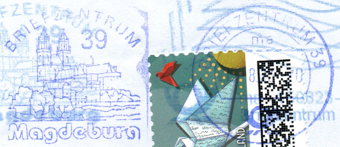 Textinhalt bei Gelegenheitsstempel: BRIEFZENTRUM / 39 / Magdeburg