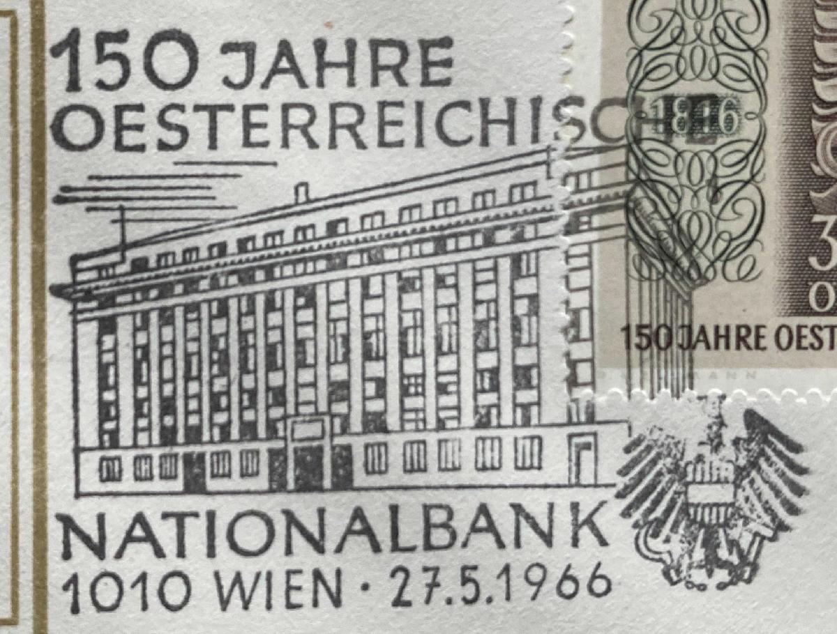 Textinhalt bei Gelegenheitsstempel: 150 JAHRE / OESTERREICHISCHE / NATIONALBANK