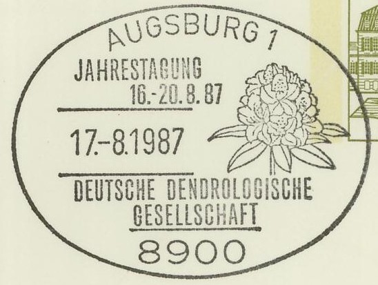 Textinhalt bei Gelegenheitsstempel: JAHRESTAGUNG / 16.-20.8.87 / DEUTSCHE DENDROLOGISCHE / GESELLSCHAFT