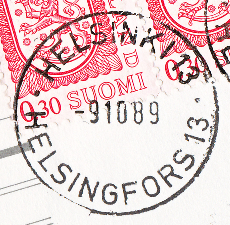 Stempeltext: HELSINKI 13 / • HELSINGFORS 13 •