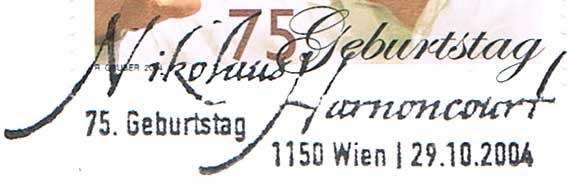 Textinhalt bei Gelegenheitsstempel: Nikolaus / Harnoncourt / 75. Geburtstag
