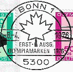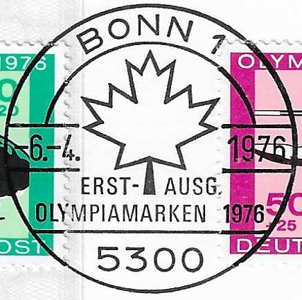 Textinhalt bei Gelegenheitsstempel: ERST- / AUSG. / OLYMPIAMARKEN 1976