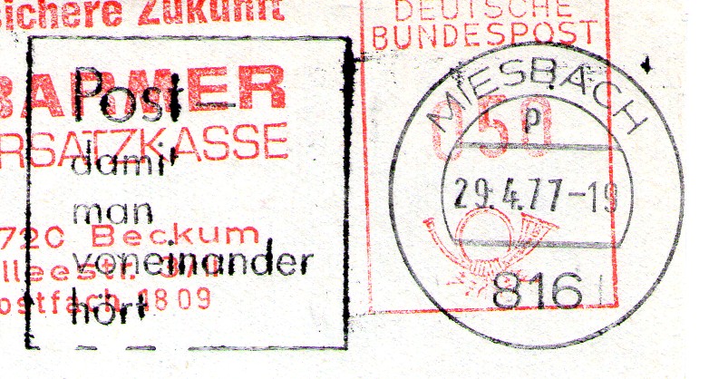 Textinhalt bei Gelegenheitsstempel: Post - / damit / man / voneinander / hört